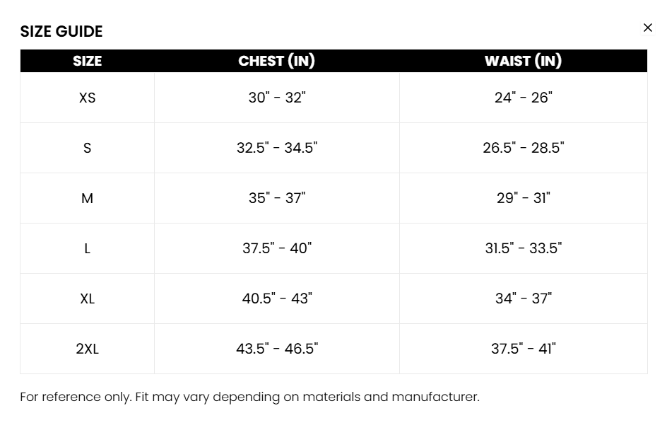 S, M, L, XL, XXL
