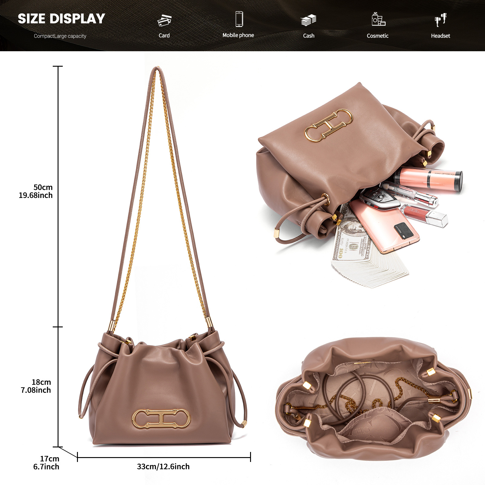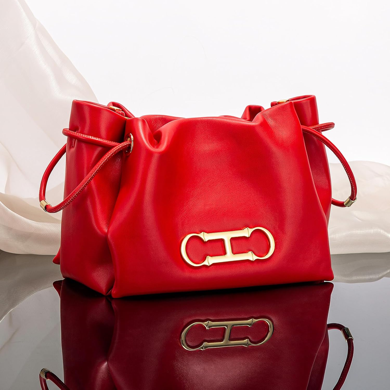 CHCH Women’s fashion letter drawstring bucket bag commuter casual shoulder crossbody bag