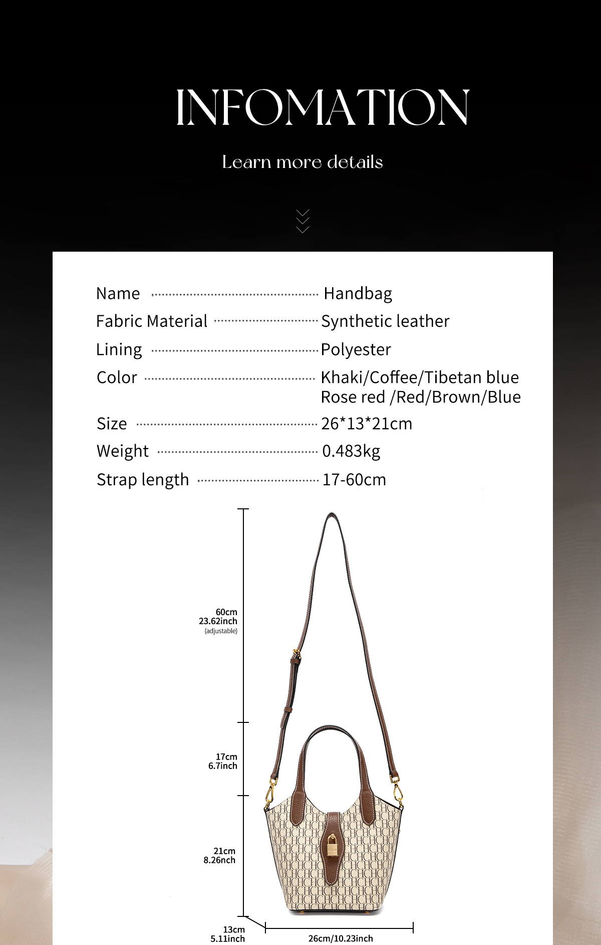 | Color | Apricot, Blue, Brown, Coffee, Dark blue, Red, Rose Red |