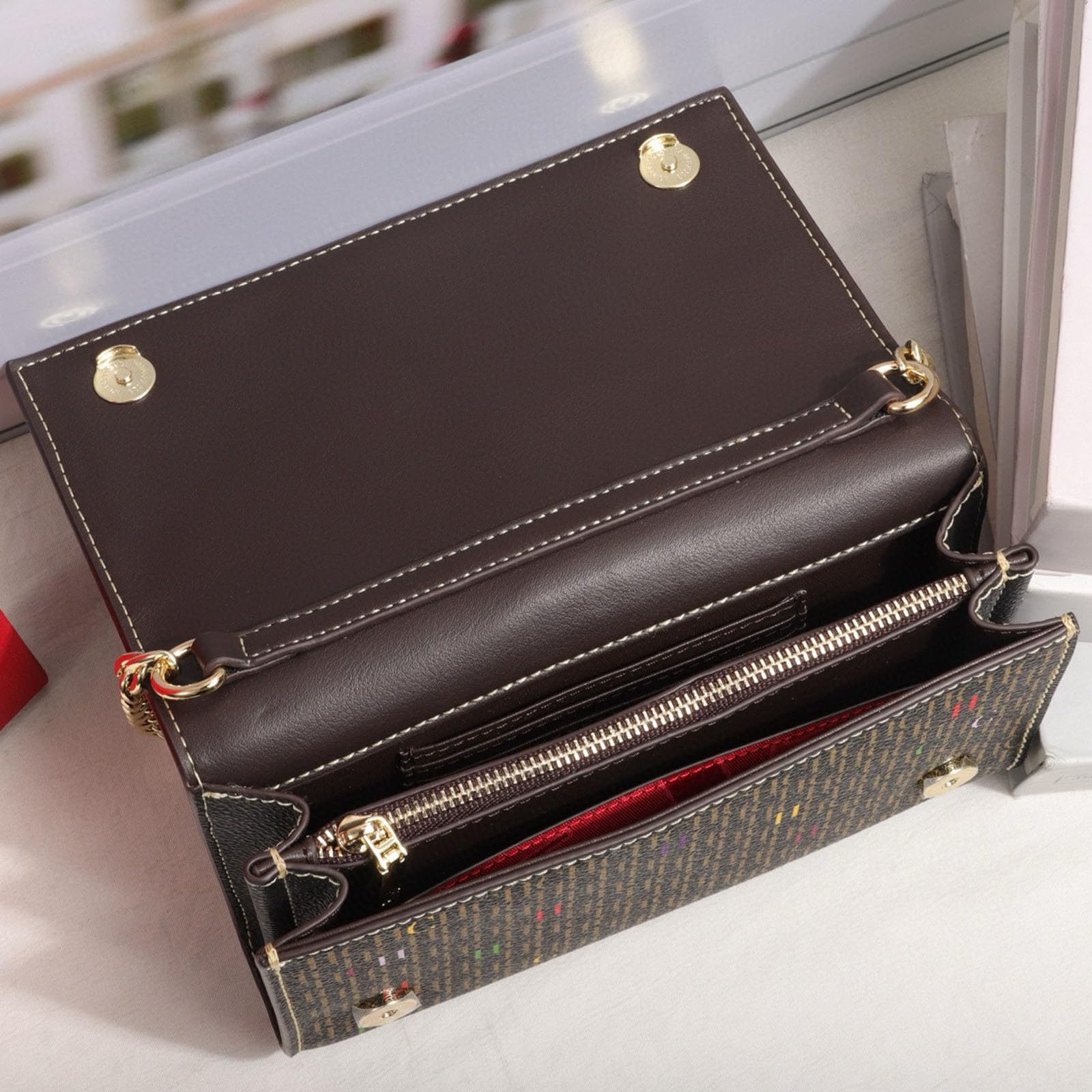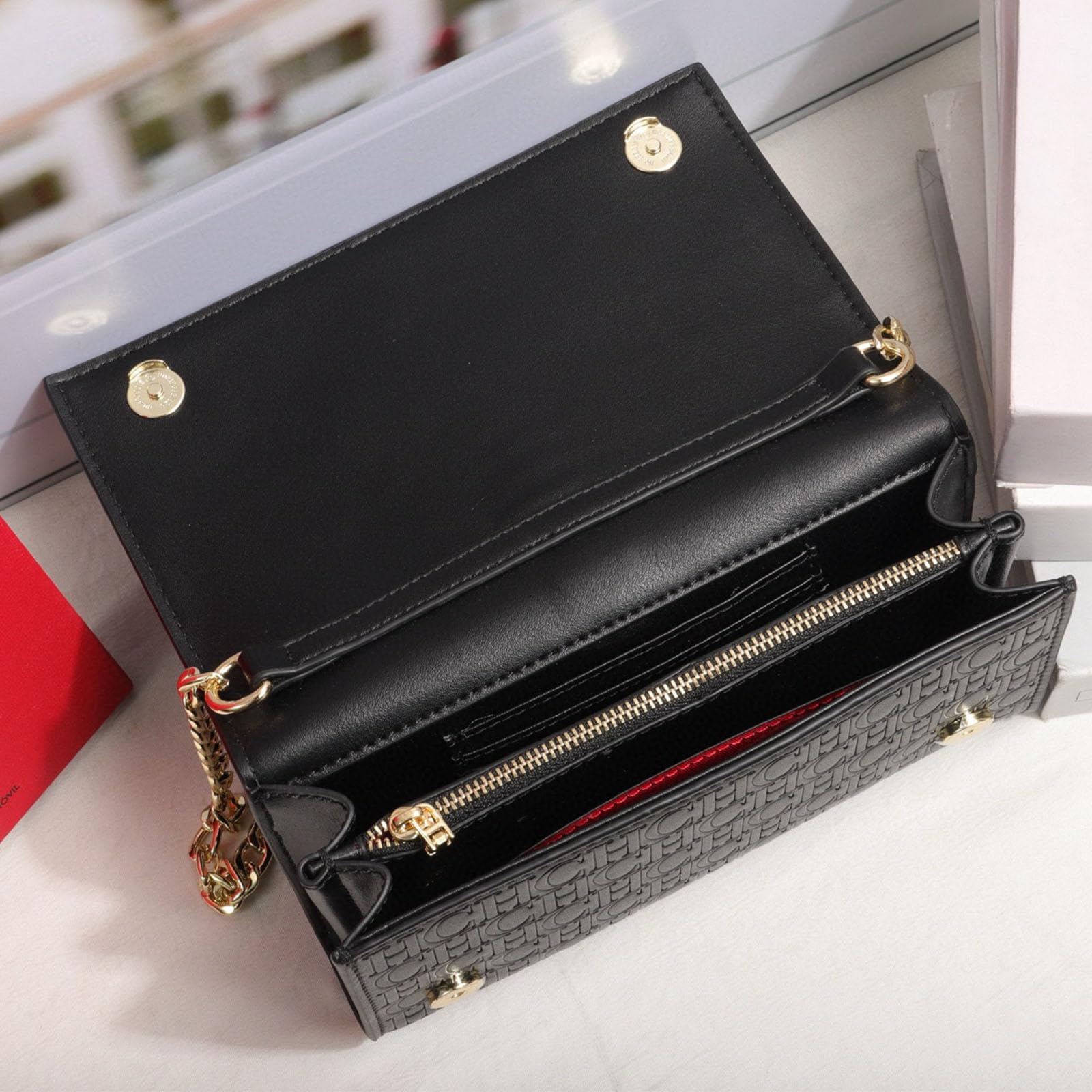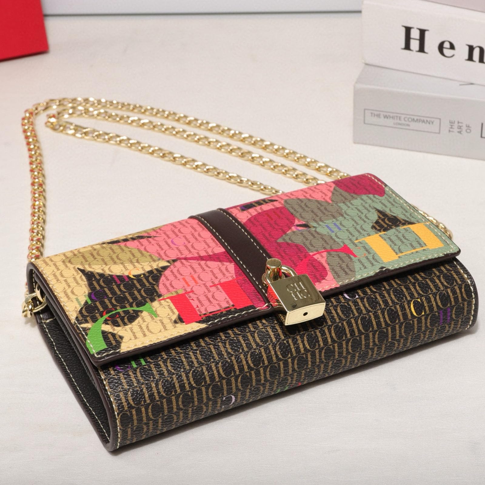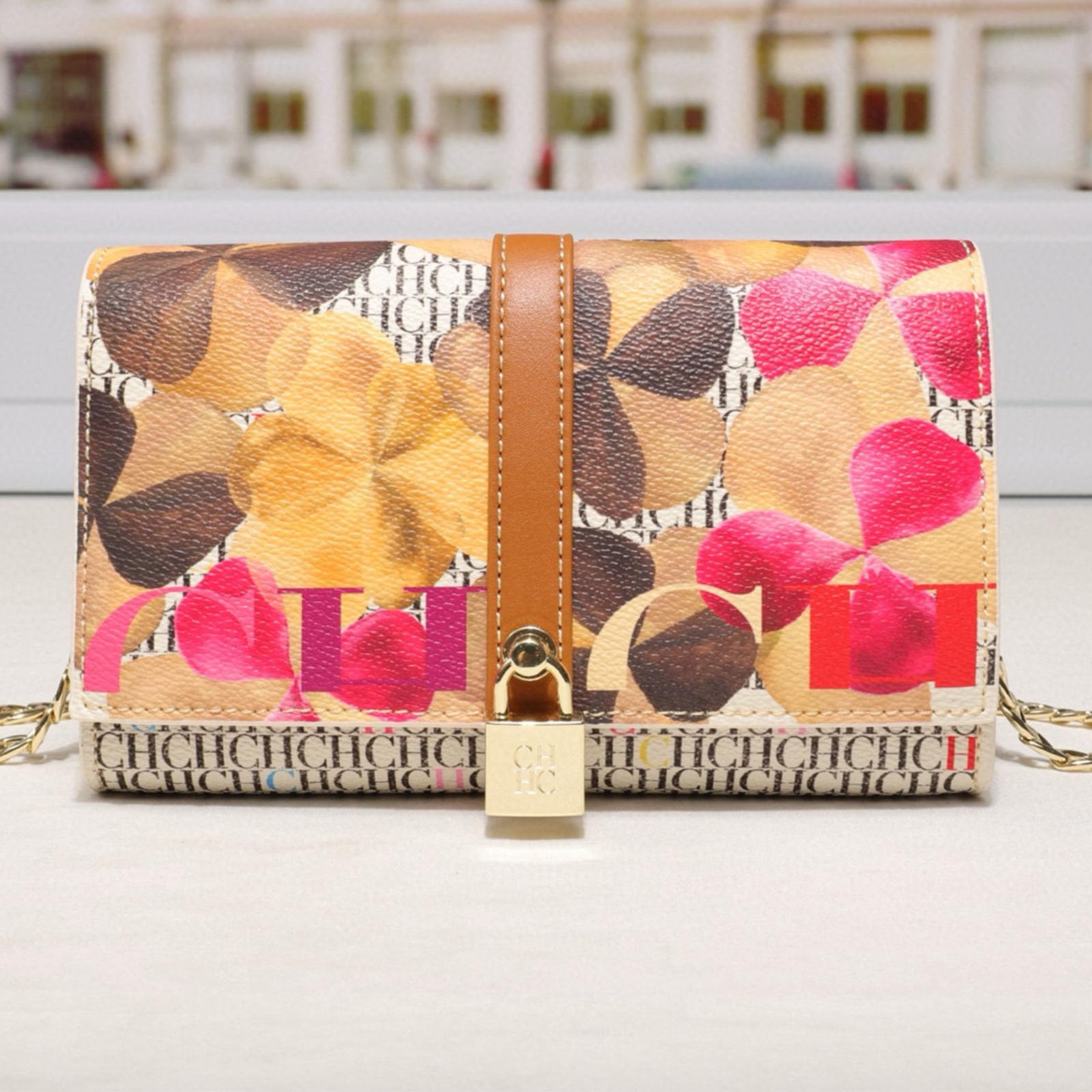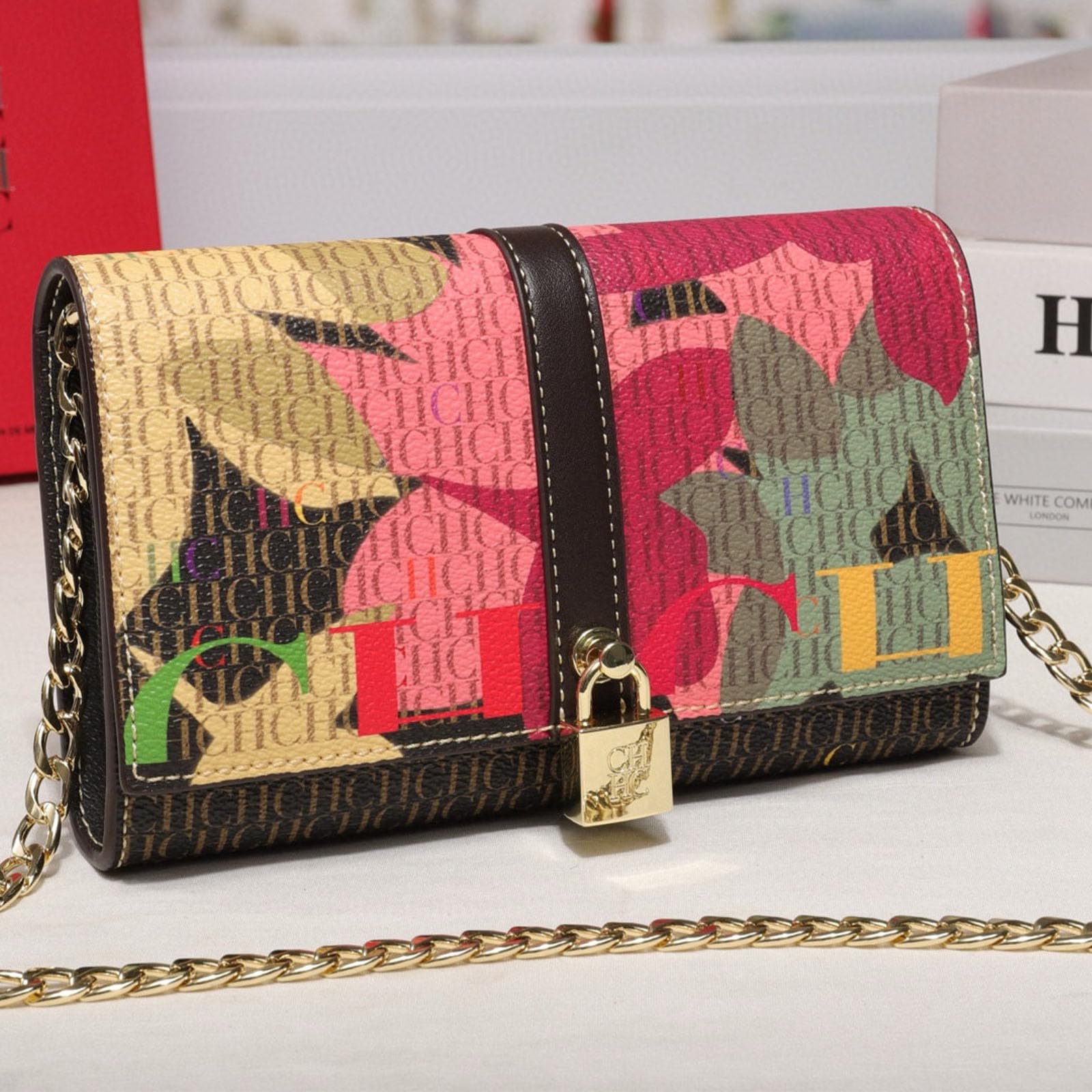 CHCH women’s letter print shoulder bag, flap chain bag, mobile phone wallet, crossbody bag