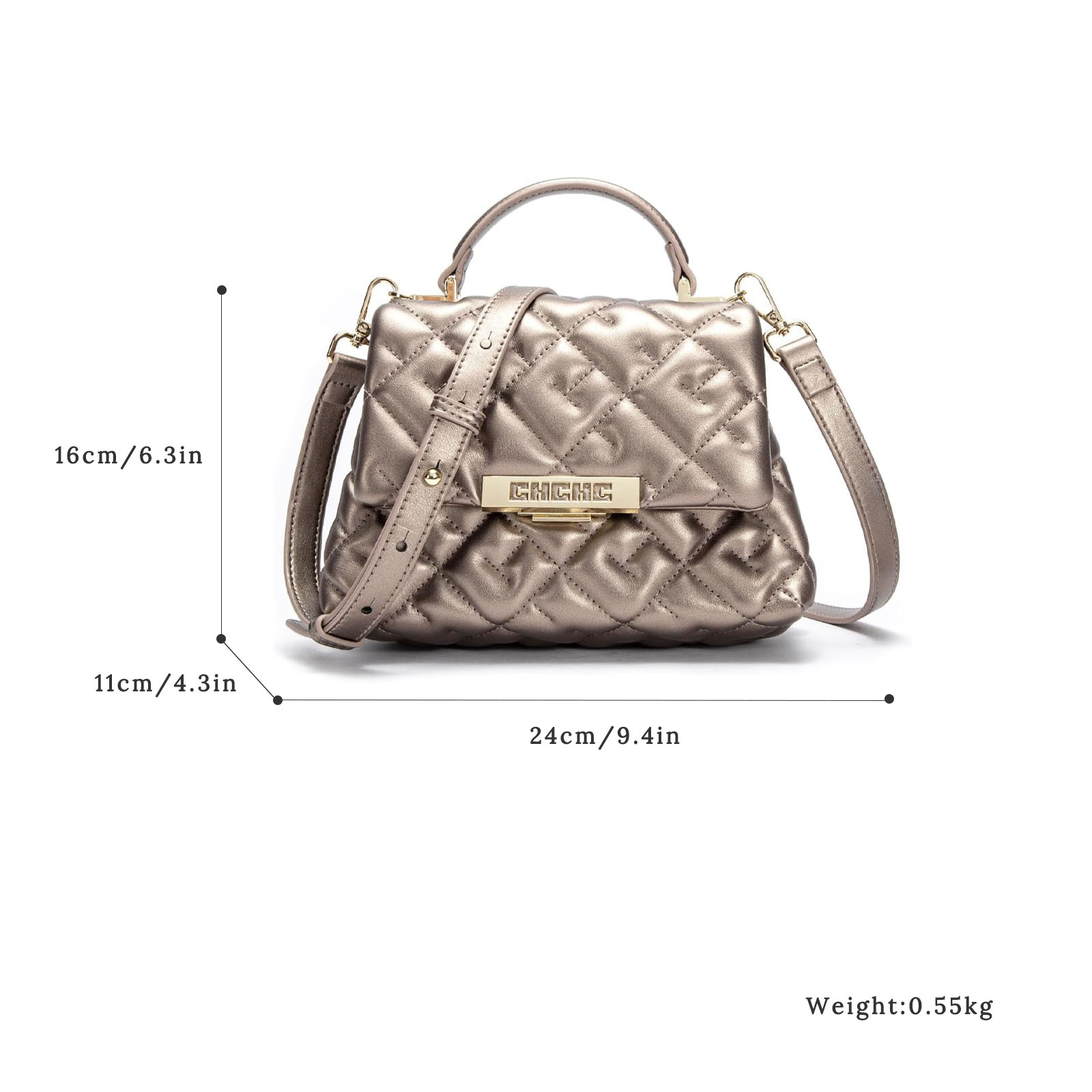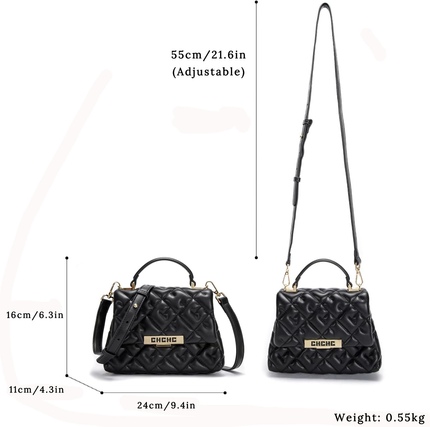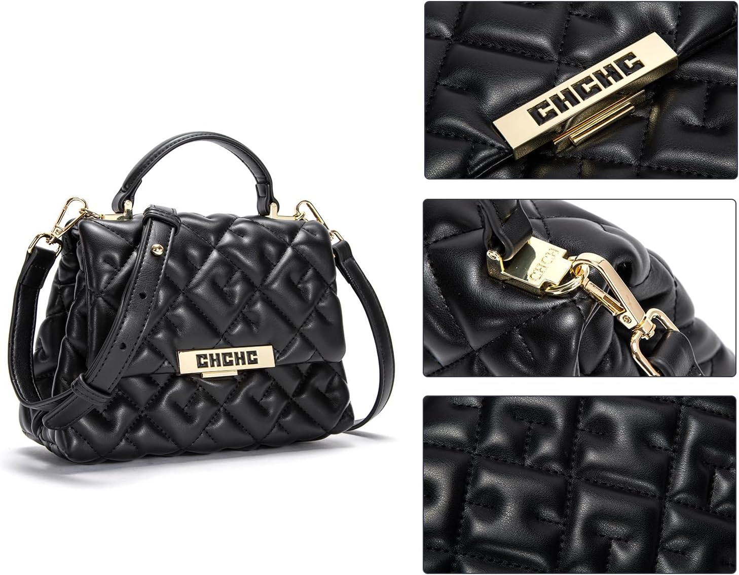 CHCH Women’s Letter Embossed Crossbody Bag Fashion Commuter Handbag Women’s Shoulder Bag PU Leather Handbag